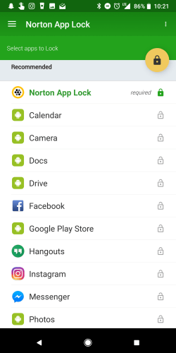 Unfortunately, the app locker (depending on your device specs) lags. On my phone, it spawns almost instantly. However, for a split second, the user can see the app before Norton covers the screen with its yellow stop sign. If you’re trying to hide photos or account information, an unauthorized individual may be able to view or even navigate for a moment before Norton appears. On a slower device, I tested breaking into an app, and it took Norton a good two or three seconds to prevent user access. So the faster your phone is, the better the App Lock will perform.