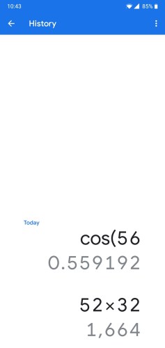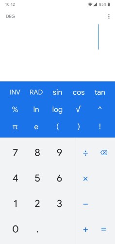 The keypad gets a slightly dull white look. On its right, the arithmetic functions get a blue font color. Above the keypad, all the scientific functions get a blue background and white font color. Google’s new font, Google Sans, is used throughout the app.