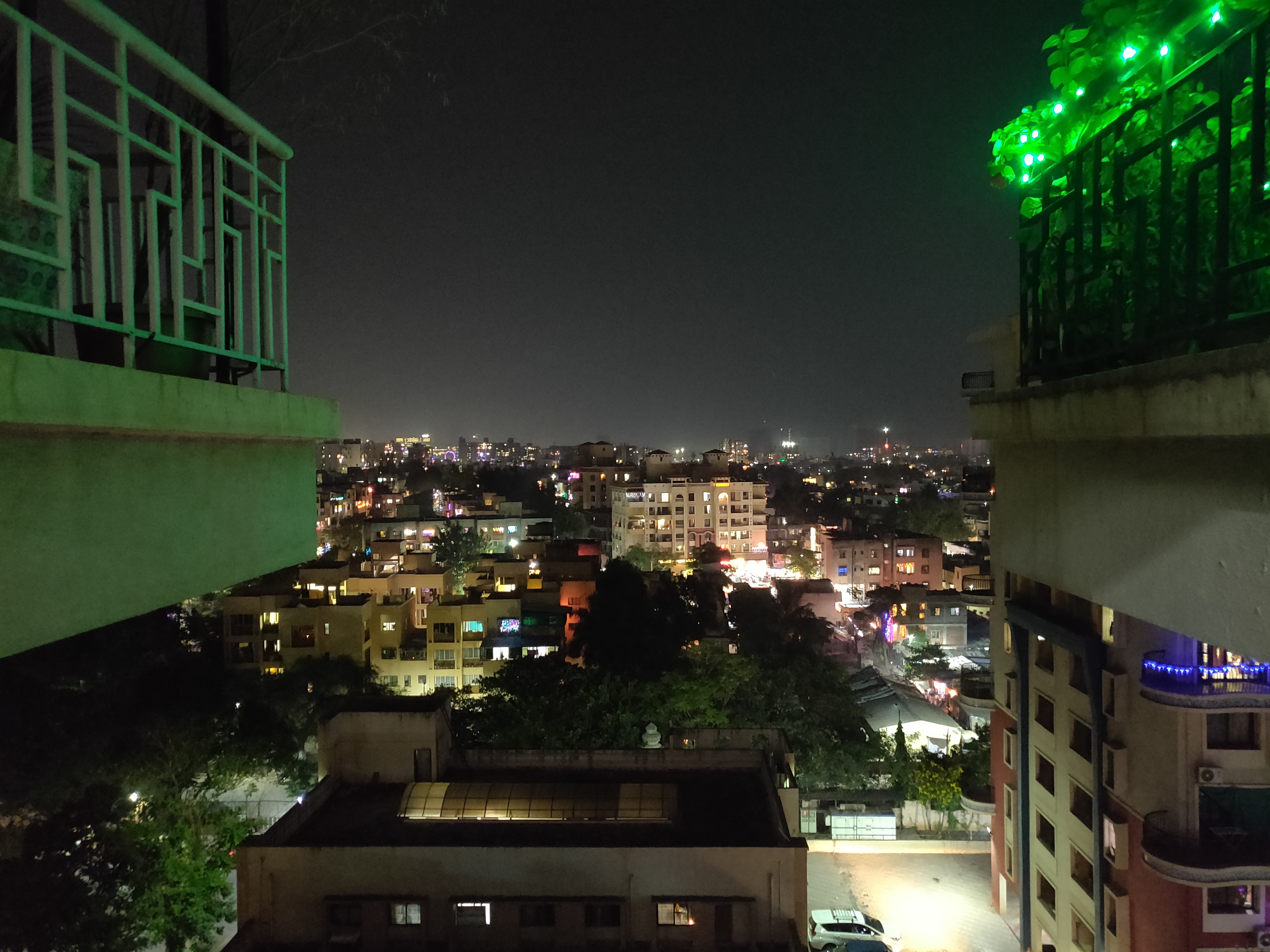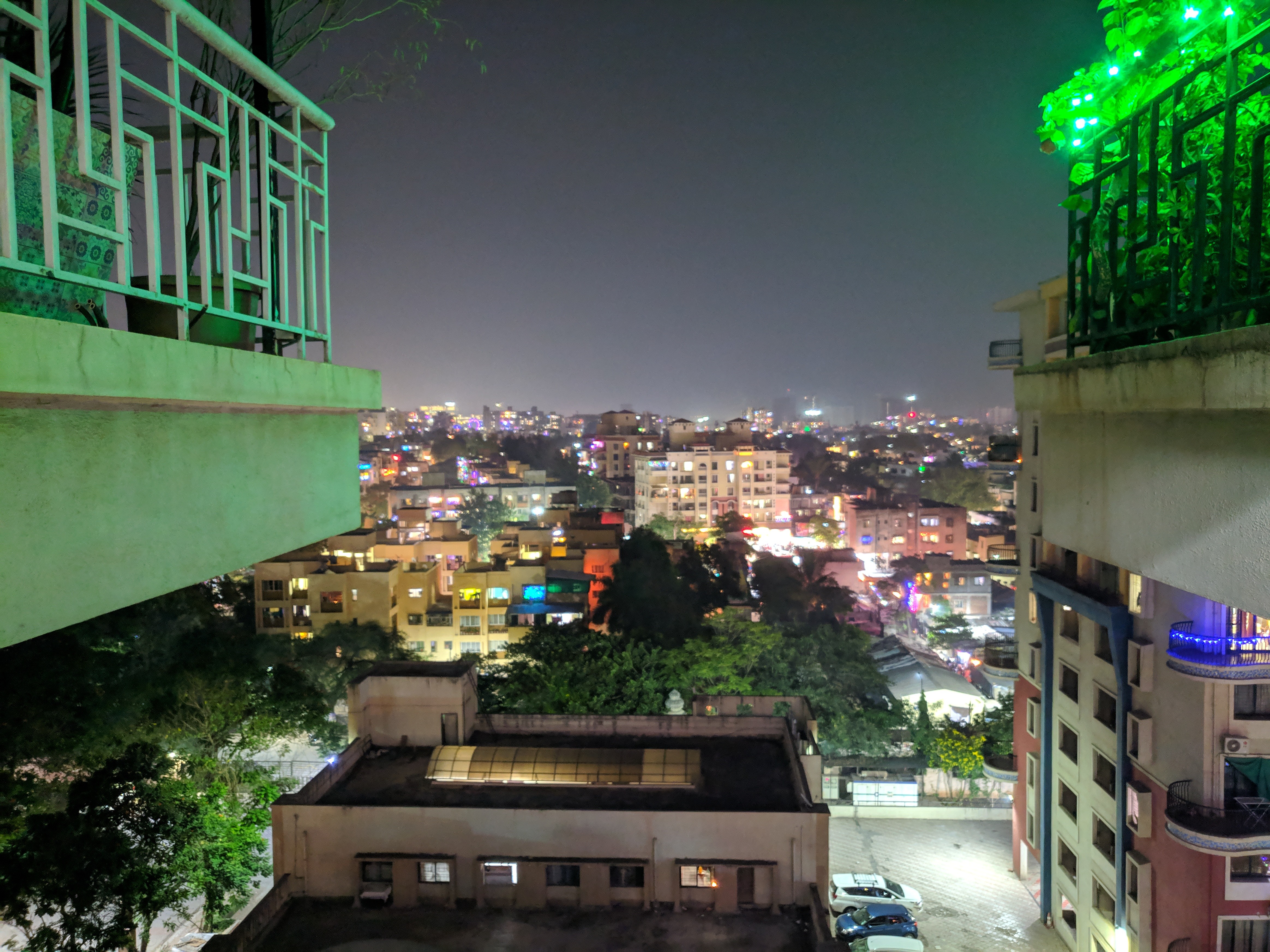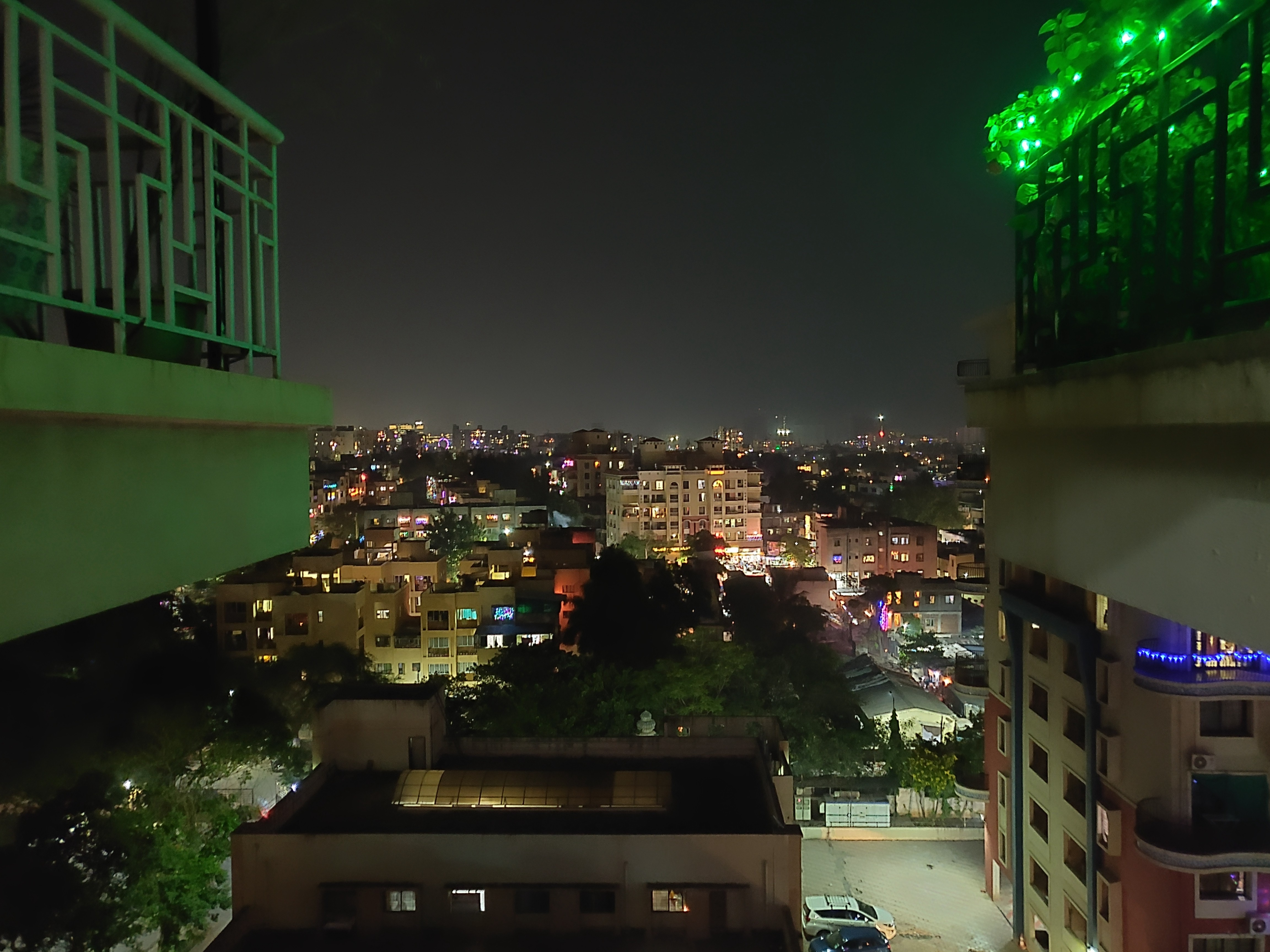 We begin with a classic landscape shot of some dimly lit buildings under the moonlight. Right off the bat, we can spot some distinct differences between the images. Starting with OnePlus’ photo taken in Auto mode, we can notice the slightly overblown highlights evident in the parking space in the bottom right corner and the far lightings in the buildings, accompanied with slight luminance noise in the sky. While it looks well-composed for the most part, it certainly leaves something to be desired. Fortunately, switching over to Nightscape mode seems to address all of these concerns to a great extent, with details retained in the darker areas in the buildings in a typical HDR fashion.