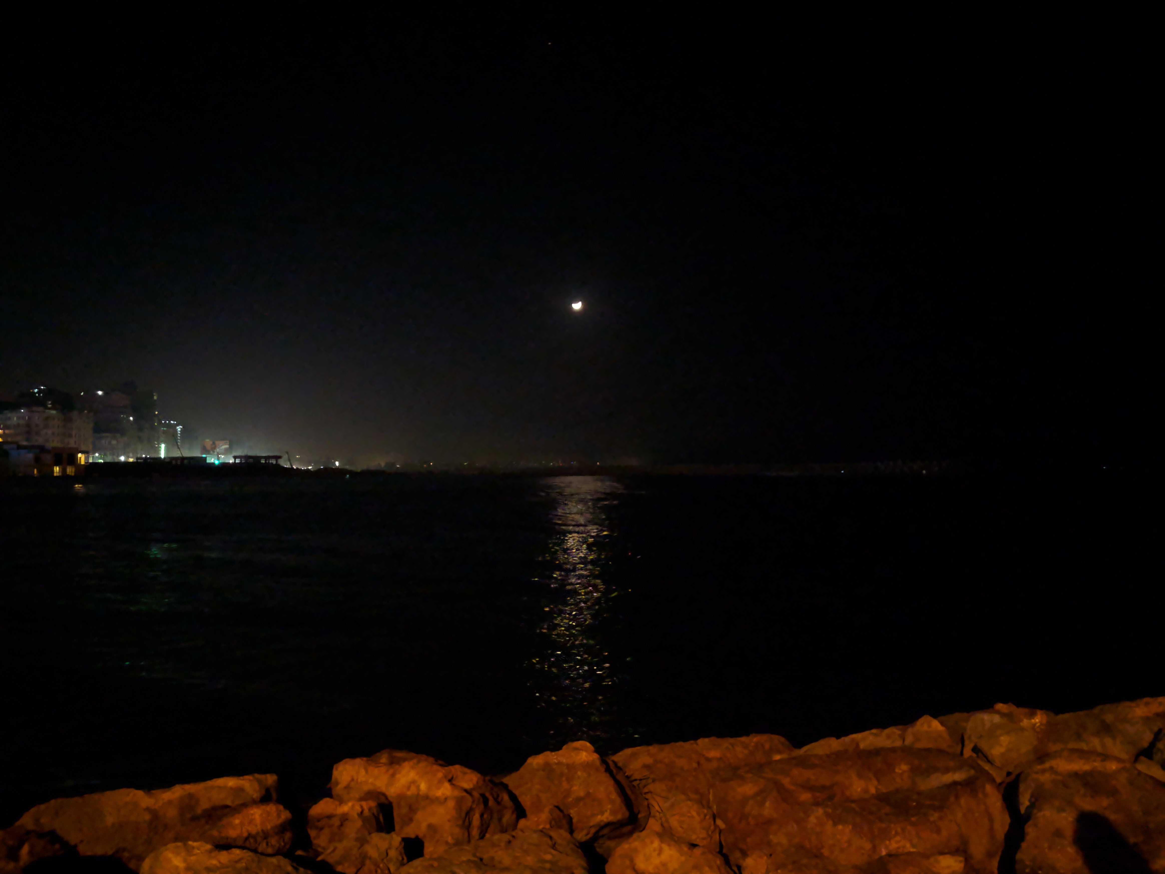 Out of pure curiosity, I switched back to OnePlus’ Auto mode. As expected, the resulting image is very similar to Nightscape’s image, save for slightly higher noise levels in the sky but more discernible details in the dark areas of the sea. In the name of science, I decided to take a photo using Gcam albeit in Auto mode instead. Like the previous cases, I ended up with an unusably dark photo. One thing that is worth noting, this is the only shot where the phone retained the crescent shape of the moon. I took multiple images and ended up with the same result.